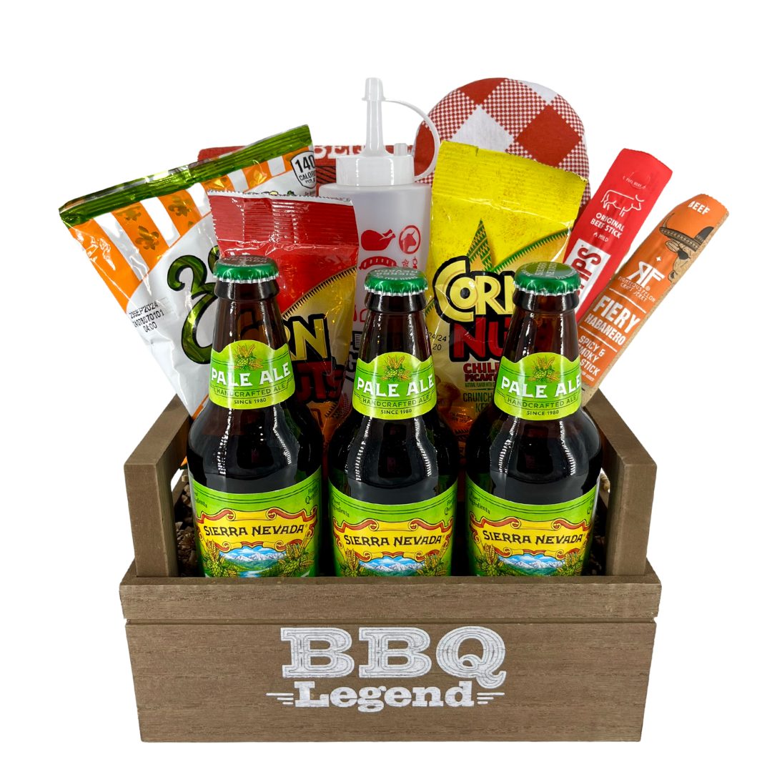 Elevate your grilling game with our exquisite BBQÂ Legend Gift Basket, a carefully curated collection of premium snacks, and grilling accessories and beer designed to delight any barbecue enthusiast. Perfect especially for backyard gatherings, picnics, or gifting, this basket is a celebration of all things BBQ.
