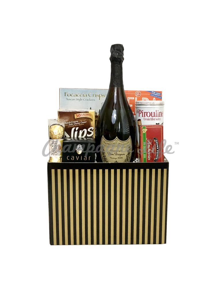 Dom Perignon and Caviar Gift Basket Features: